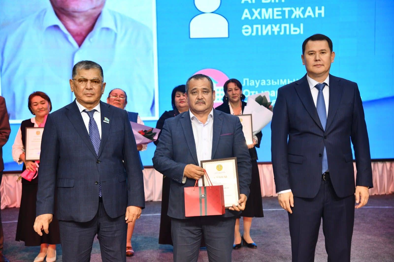 Сондай-ақ, мұғалімдер мерекесінде аудандық білім бөлімінің басшысы Құдайберген Қайыпбекұлы мен аудандық білім қызметкерлерінің кәсіподақ ұйымының төрағасы Егемберді Жасұзақұлы білім көшін жылжытып келе жатқан ұстаздар қауымына аудандық ҚР Оқу-ағарту министрлігі мен Түркістан облыстық білім басқармасының және кәсіподақтың алғыс хаттары мен құрмет граммоталарын табыстады. Ардагер ұстаз, Отырар ауданының Құрметті азаматы Пердехан Абайұлы ұлағатты жандарды кәсіби меркелерімен құттықтап, мұғалімнің ұрпақ тәрбиесіне сіңірген еңбегін ерекше атап өтті.