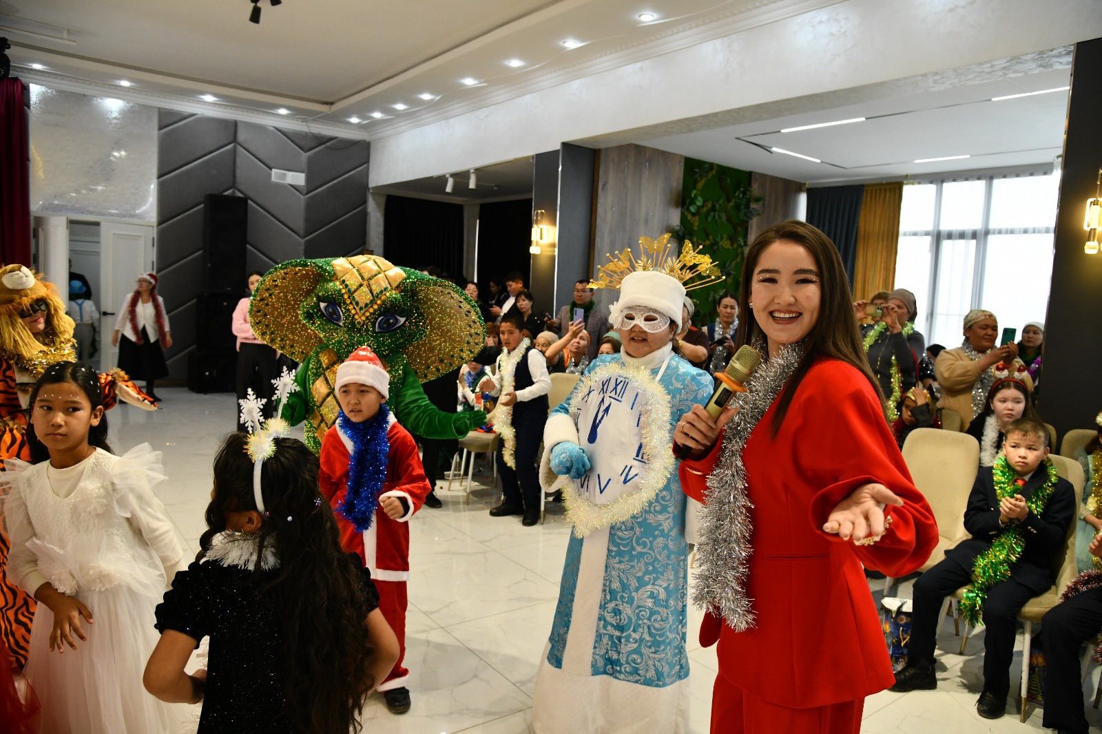 Іс-шара аясында балаларға арналған театрландырылған қойылымдар, ертегі кейіпкерлерінің қатысуымен ойын-сауық бағдарламалары ұйымдастырылып, мерекелік көңіл күй сыйлады. Әсем безендірілген шырша жанында балалар ән айтып, би билеп, көтеріңкі көңіл күйде болды.