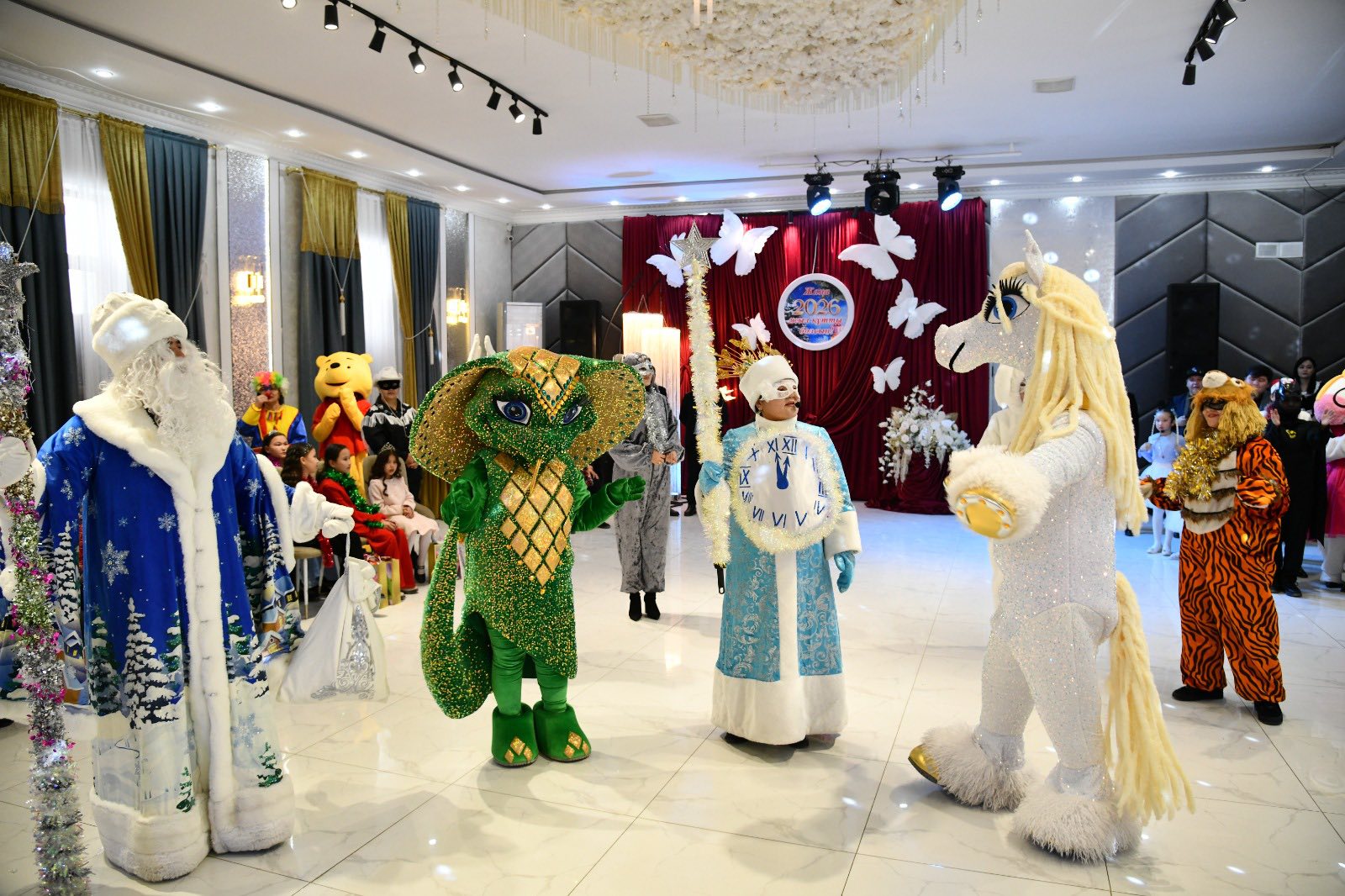 Іс-шара аясында балаларға арналған театрландырылған қойылымдар, ертегі кейіпкерлерінің қатысуымен ойын-сауық бағдарламалары ұйымдастырылып, мерекелік көңіл күй сыйлады. Әсем безендірілген шырша жанында балалар ән айтып, би билеп, көтеріңкі көңіл күйде болды.