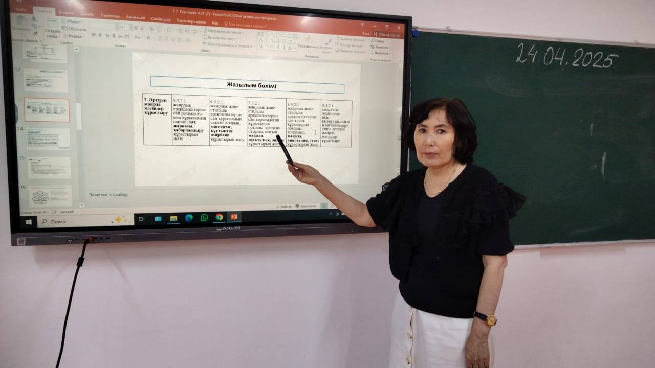 Отырар ауданы Жамбыл мектеп-лицейі базасында, 2025 жылы 21.04-02.05 аралығында «Қазақ тілі» және «Қазақ әдебиеті» пәндері педагогтерінің пәндік және кәсіби құзыреттіліктерін дамыту» тақырыбында қазақ тілі мен әдебиеті пәні мұғалімдеріне арналған педагогтердің біліктілігін арттыру курсы өтілуде. Курсты «Өрлеу» біліктілікті арттыру ұлттық орталығы АҚ«Түркістан облысы бойынша кәсіби даму институты»филалының тренері Жанысбек Ләззат жүргізуде. Мұғалімдердің кәсіби құзыреттіліктерін дамытуда оқу бағдарламасы бойынша оқу мақсаттарына сәйкес оқушының сапалы білімге жету,оқу сауаттылығын меңгеру,тіл тазалығын сақтап,сөздік қорды дамыту мақсатында әдіс -тәсілдер талданды. Атап айтар болсақ, «Біле жүрейік», «идеяларды ұстап ал», «Пікір, дәлел,қорытынды», «Эмоция кестесі», «Оқиға тауы» сияқты бірнеше заманауи әдістермен танысып, сабақ барысында қолданылып, практика жүзінде әріптестік кері байланыстар жасалды. Жеке тұлғаның дұрыс сөйлеу,жазу дағдысын қалыптастыруда тиімді тапсырмалар құрастыру т.б тәжірибелік жұмыстар белсенді жүргізілуде. «Оқушы сауатты болу үшін- мұғалімнің сауаттылығы маңызды» қағидасымен курсқа қатысушылар әр күнді тиімді пайдалануда.Соңғы жаңалықтарды меңгере отырып, заманауи цифрлық кезеңге жаңалықпен ілесу үшін, кәсіби білімді үнемі, үздіксіз жетілдіріп отыру керек.